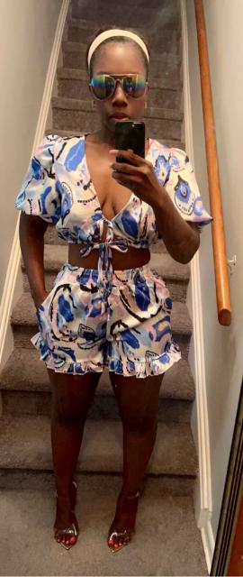 This short and blouse set is made for summer fun! Whether it be for brunch, dinner, boat rides and more.